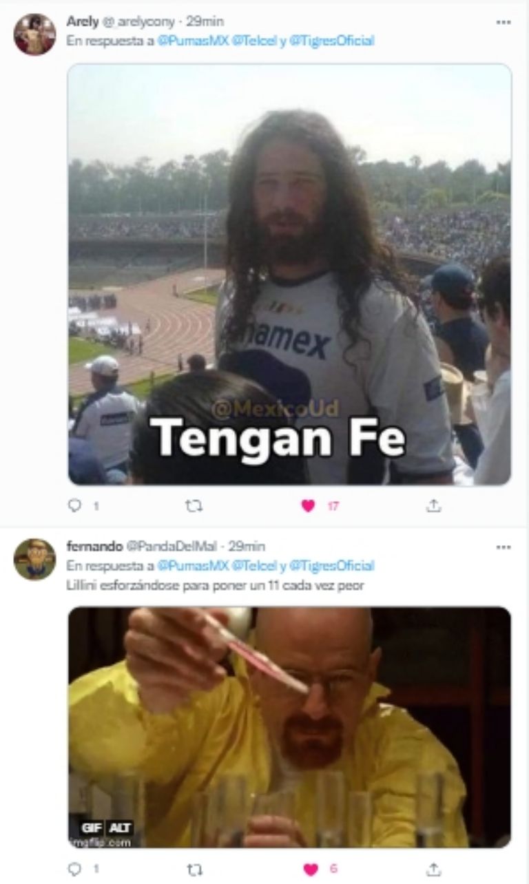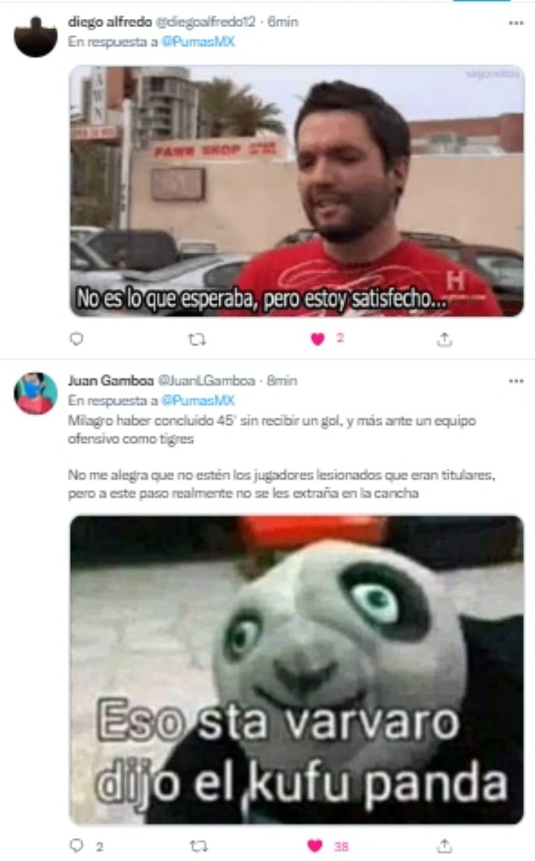 ¡Los capitalinos siguen sin ganar! Después de 90 vibrantes minutos en la cancha del Olímpico Universitario, los Pumas de la UNAM no aprovecharon su condición de local luego de ser igualados de último minuto por los Tigres de la UANL por 1-1, en duelo correspondiente a la jornada 11 del Apertura 2022 que generó consigo bastantes memes en las redes sociales.