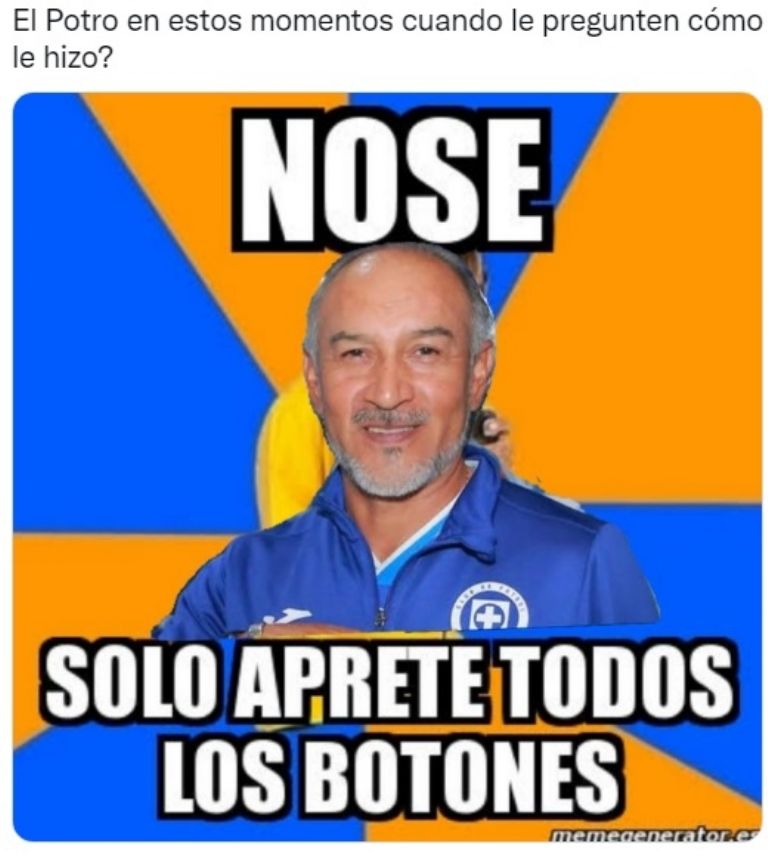 Gracias al empate entre Mazatlán y Necaxa, Potro Gutiérrez aseguró su lugar con Cruz Azul en el Repechaje por el título del Apertura 2022, donde no le ha ido muy bien, pero que sus aficionados celebraron con entusiasmo en redes sociales con divertidos e imaginativos memes.