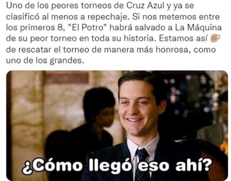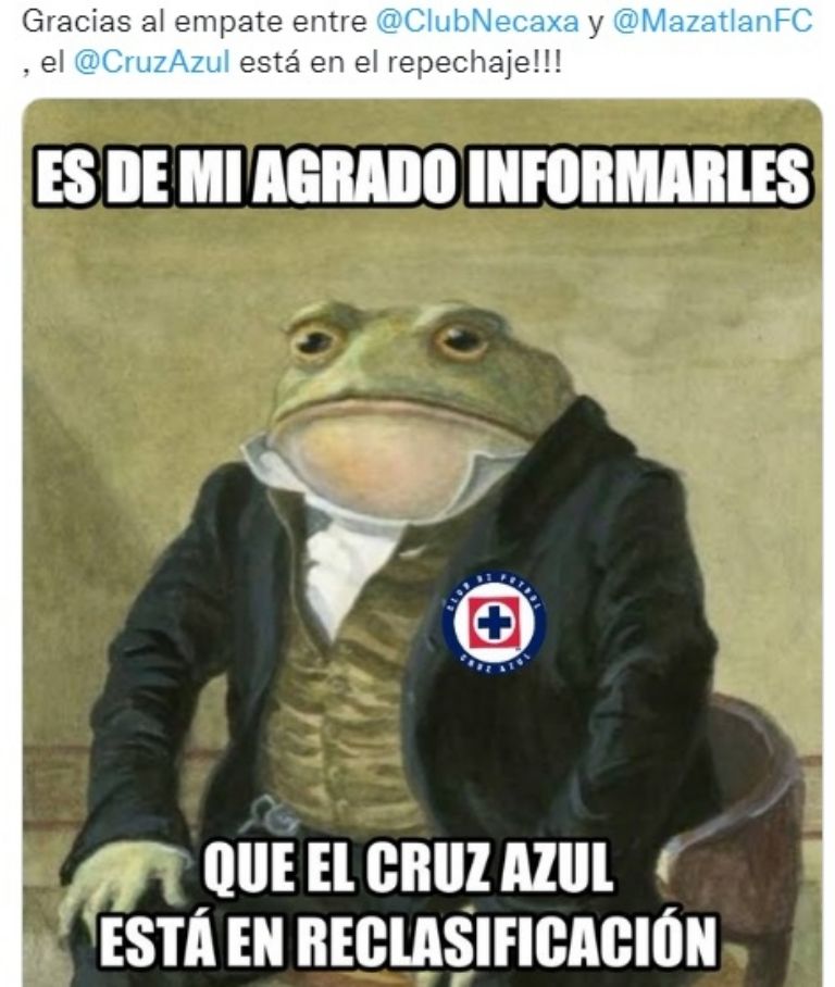 Como sea y como la esperanza muere al último luego de uno de sus peores campeonatos, en redes sociales la afición cementera celebró con memes la clasificación de Cruz Azul al Repechaje, donde esperan superar la malaria y, ahora sí, clasificarse a la lucha por un nuevo título.