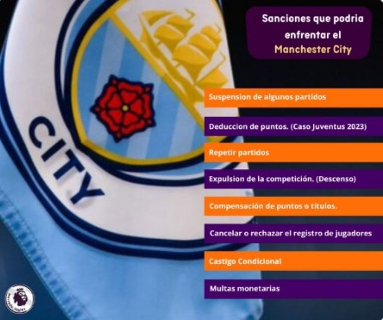 Curiosamente, diversos medios en Inglaterra mencionan que el conjunto citizen habría roto hasta más de 100 reglas relacionadas con el Fair Play Financiero. Y de concederse esto, el cuadro dirigido por Pep Guardiola podría sufrir uno de estos 8 castigos, mismos que van desde cuestiones económicas y administrativas hasta un posible descenso de categoría.