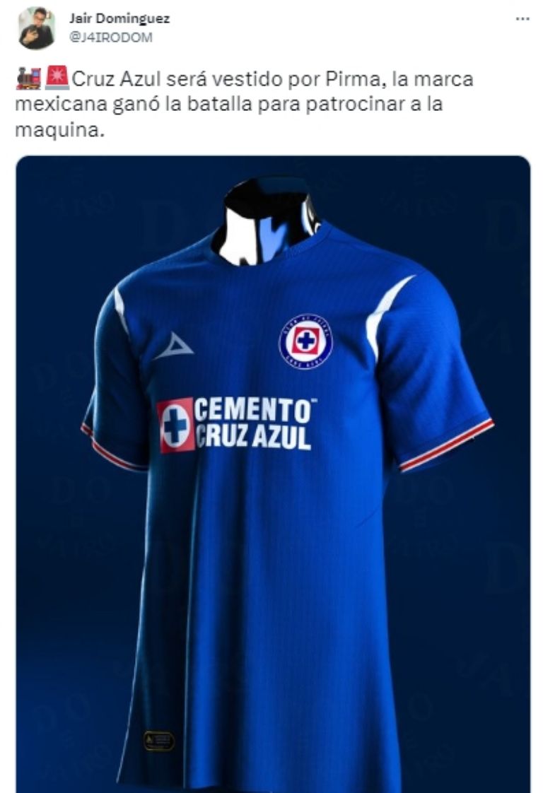 Jair Domínguez, quien es fanático de Cruz Azul y que en el pasado ha tenido la oportunidad de crear uniformes profesionales para escuadras de la Liga de Expansión, dio a conocer que la marca que vestirá a la Máquina a partir del torneo Apertura 2023 será Pirma, la cual ya tiene experiencia con otras instituciones de la máxima categoría.