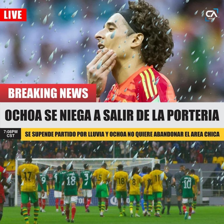 Al 32’, con la lluvia y la tormenta eléctrica a todo lo que daban, Jamaica se fue al frente 2-1 con centro al área chica en el que Memo Ochoa se preocupó más por empujar a un delantero jamaicano en un claro penalti, que cortar una pelota que lo superó y rebotó en Edson Álvarez para un clarísimo autogol y el 2-1 para los Reggae Boyz.