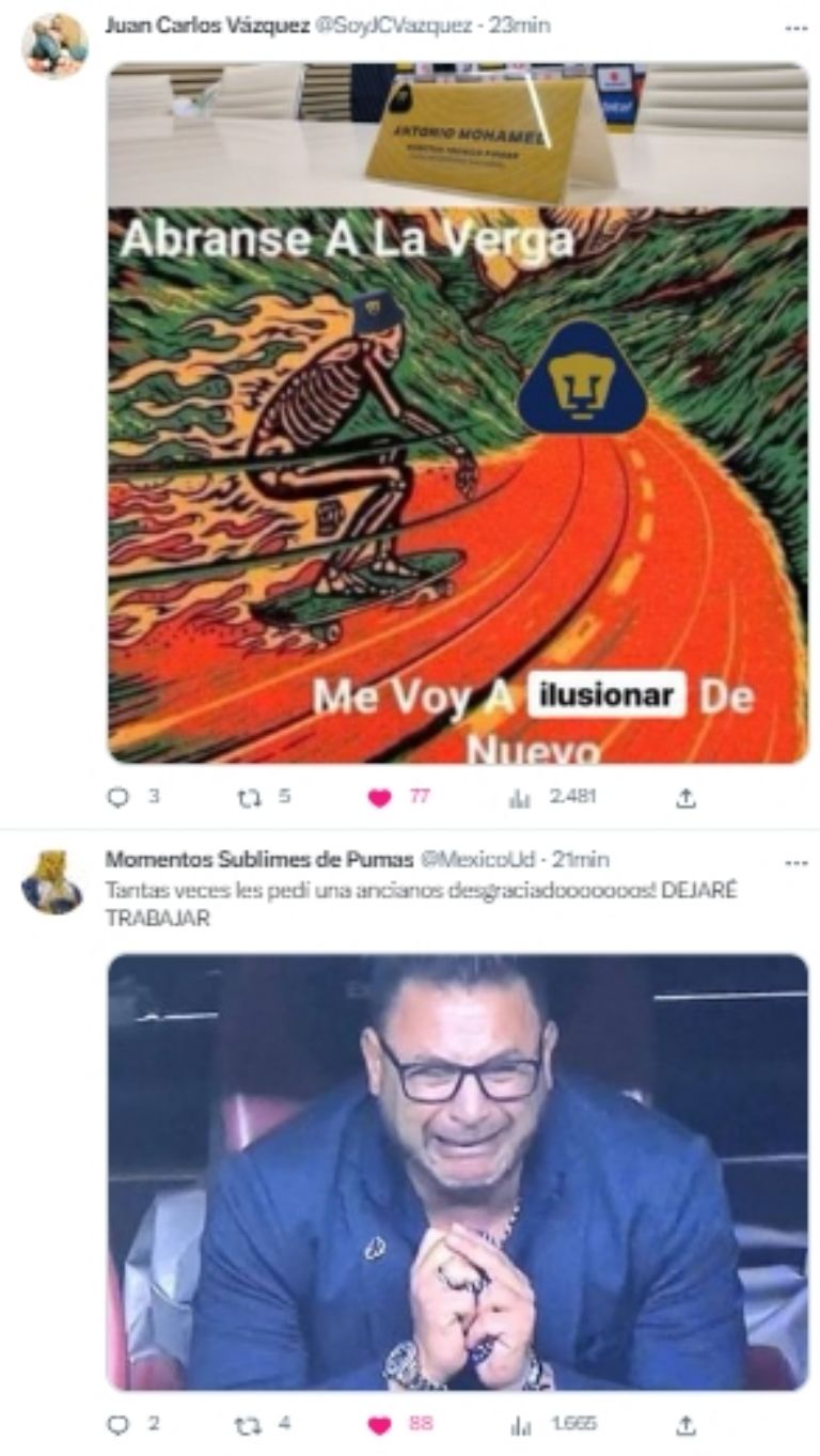 Finalmente es oficial. Después de varios días en donde el rumor se acrecentó y del arribo del entrenador argentino a la capital del país, los Pumas de la UNAM confirmaron a Antonio Mohamed como su nuevo director técnico de cara al resto del torneo Clausura 2023 de la Liga MX, hecho que generó una serie de memes en redes sociales.