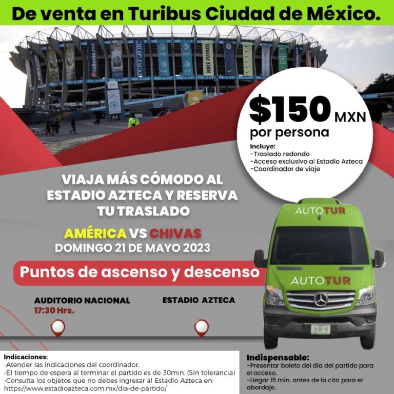 Pero, ¿Qué es el Autotur y qué tiene que ver con el Estadio Azteca? Te lo explicamos con detalle a continuación. Podrías echar mano del servicio en caso de que tengas boleto para el América vs Chivas. Nadie se quiere perder el compromiso, sentenciará las esperanzas de uno de los dos grandes de la Primera División de México. Estos son los precios.