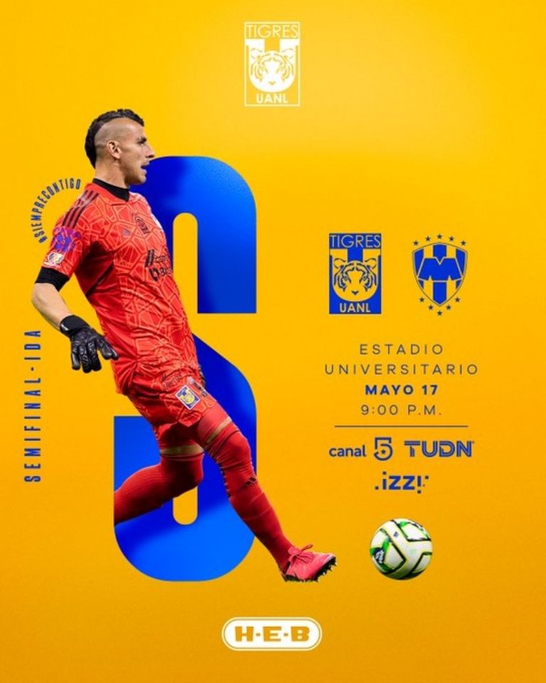 - Tigres vs Monterrey | semifinal de ida, Clausura 2023 | miércoles 17 de mayo | Volcán Universitario | 21:00 horas | Canal 5 e Izzi.