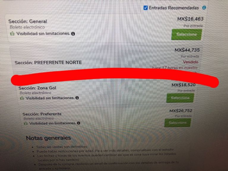 El boleto corresponde a la sección Preferente Norte; mismo que en la venta exclusiva que la directiva regiomontana realizó a sus miembros honorarios, entre el domingo 21 y el martes 23 de mayo con tal de activar abonos y palcos en el recinto, costaba 770 pesos mexicanos. Es decir, 43 mil 965 pesos más de su valor original.
