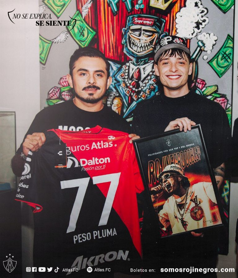 ¡Felicidades por ser un Rojinegro destacado en el mundo, Peso Pluma! Pones en el top a la música mexicana y presumes el amor que le tienes a la Rojinegra a donde vas. Por eso, junto a la Ke Buena, te entregamos este reconocimiento y te deseamos lo mejor en el lanzamiento de tu álbum 'Génesis', advirtió Atlas en sus medios oficiales.