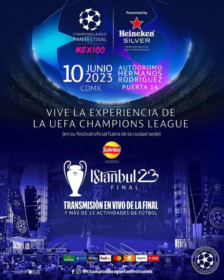 El Fan Fest de la Champions League en la CDMX se llevará al cabo el próximo sábado 10 de junio de 10 a 21 horas en las curvas 4, 5 y 6 del Autódromo Hermanos Rodríguez, con entrada general individual o en grupo de cuatro personas con acceso a la experiencia completa, así como entradas VIP individual o por pareja con entrada a la experiencia completa, además de un lounge privado, snacks, comida, bebidas no alcohólicas ilimitadas y dos cervezas de cortesía.