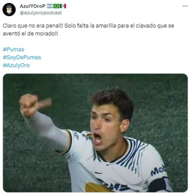 En la segunda parte, sobre el minuto 60, el árbitro Óscar Macías Romo decretó una pena máxima a favor de Mazatlán; derivado de una supuesta falta de González sobre Amarilla. Sin embargo, revisó la jugada en el VAR y revirtió la decisión. Jair Díaz, central de los sinaloenses, fue expulsado al 85'. Estos son los mejores memes de Pumas.