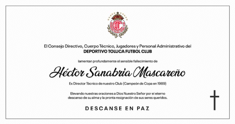 Seleccionado mexicano en los Juegos Olímpicos de 1968 y entrenador, ganando la Copa México con el Deportivo Toluca, Héctor Sanabria puso de luto a la Liga MX luego de perder la vida en Toluca, Estado de México, en compañía de su esposa, hijos y nietos, quienes despidieron al líder y autoridad del vestidor que le hicieron merecedor del apodo de “El Capi” en los Pumas de la UNAM.