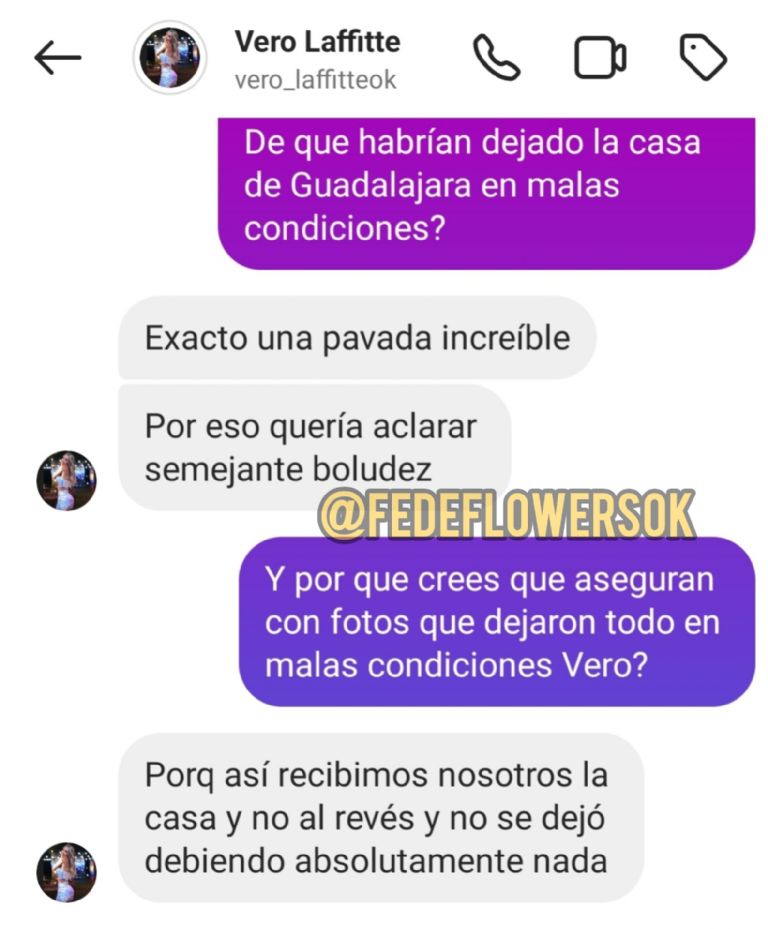 Ah, pero él no fue el único, pues Verónica Laffitte habló con varios periodistas después que se hiciera viral el video que expone a su familia tras su huida de Guadalajara, como Fede Flowers al que también le desmintió las acusaciones al afirmar que todo “es una pavada. Así nosotros recibimos la casa y no al revés y no se dejó debiendo absolutamente nada”.