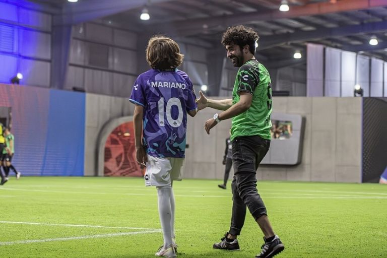 Ah, pero el futbol da revanchas y minutos más tarde, en el 2vs2, el primogénito de Luis García le trajo una gran satisfacción a su padre y a todo el equipo cuando se llevó todos los reflectores al anotar el gol que le dio vida a Calvos FC contra Gloria FC: La anotación que empató la pizarra 5-5 la hizo Mariano con gran definición a poste cambiado para comenzar a festejar.