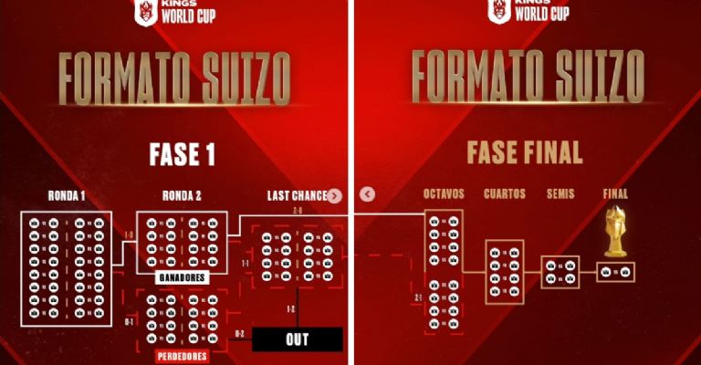 Una vez completado todos los cupos se jugará siguiendo el formato suizo lo que lleva a contar con un total de 40 partido en la primera fase. Por medio de sorteos se disputarán los partidos donde los ganadores pasarán a una ronda 2 de forma directa y los perdedores tendrán una nueva oportunidad entre ellos. Es así como pasaran 16 equipos a la Fase Final de la Kings World Cup.
