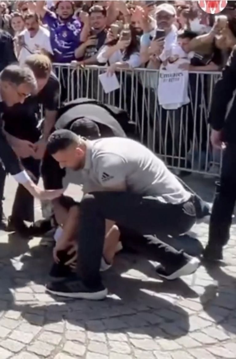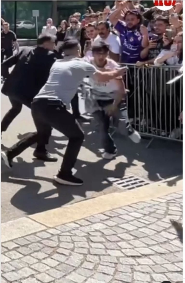 En un video que publicó el medio Marca, se puede ver cómo un aficionado del Real Madrid intentó burlar la seguridad del conjunto Blanco para tratar de llegar a Luka Modric, pero al tratar de hacerlo fue tacleado por varios elementos que cuidan la integridad de los futbolistas, posteriormente fue detenido y no se sabe si tendrá un tipo de cargos o multas.