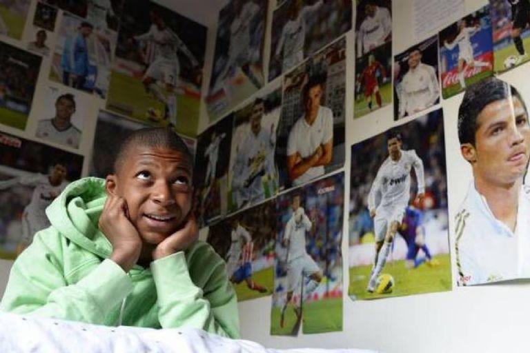Muchos futbolistas sueñan con jugar en el Real Madrid y en el caso de Kylian Mbappé no es la excepción. El francés se volvió hincha del club español desde su infancia y su máximo ídolo se llama Cristiano Ronaldo. El francés creció con la imagen de CR7 e incluso un dato curioso es que hay una foto donde está en su habitación rodeado de posters del ‘Bicho’. A sus 25 años está cerca de cumplir su anhelo.