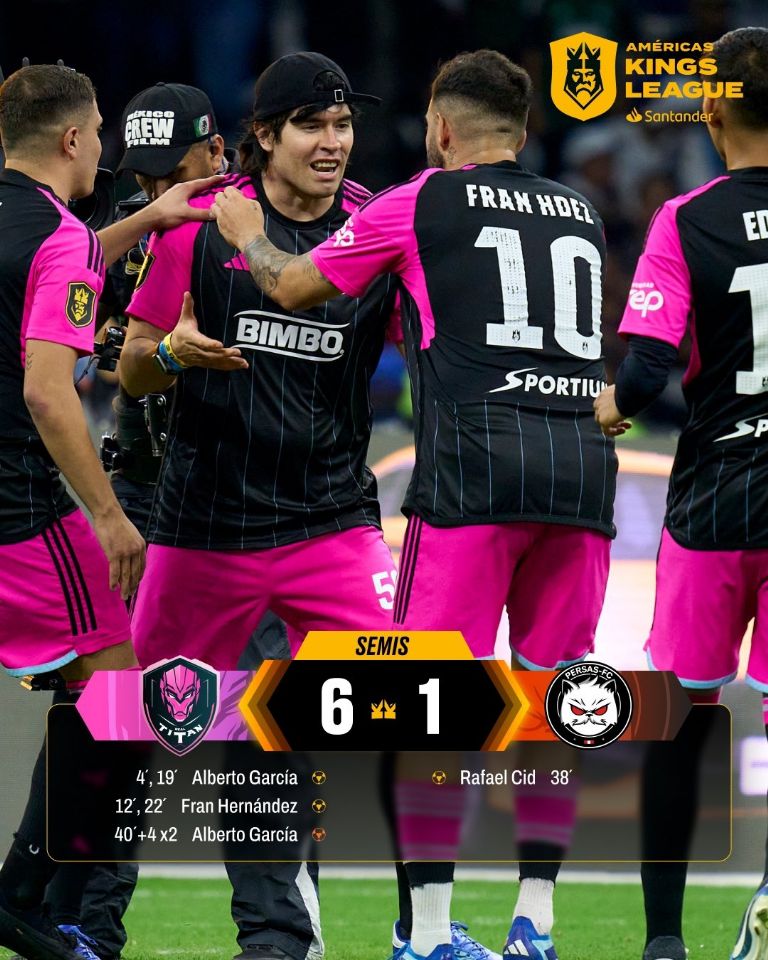 Algo similar, aunque con más emociones, ocurrió en la otra antesala a la final entre el hasta entonces mejor equipo de la Kings League Américas, Real Titán, que avanzó a la lucha por el título ante La Raniza sin sorpresas, pues venció 6-1 a unos Persas FC que quedaron en desventaja luego de que Tite Días perdiera la cabeza y saliera expulsado tras fuerte entrada en la que casi lesiona a un rival.