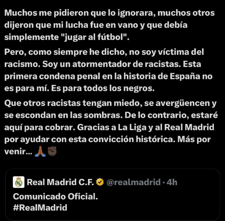 Los racistas también tuvieron que ofrecerle una disculpa a Vinicius Jr