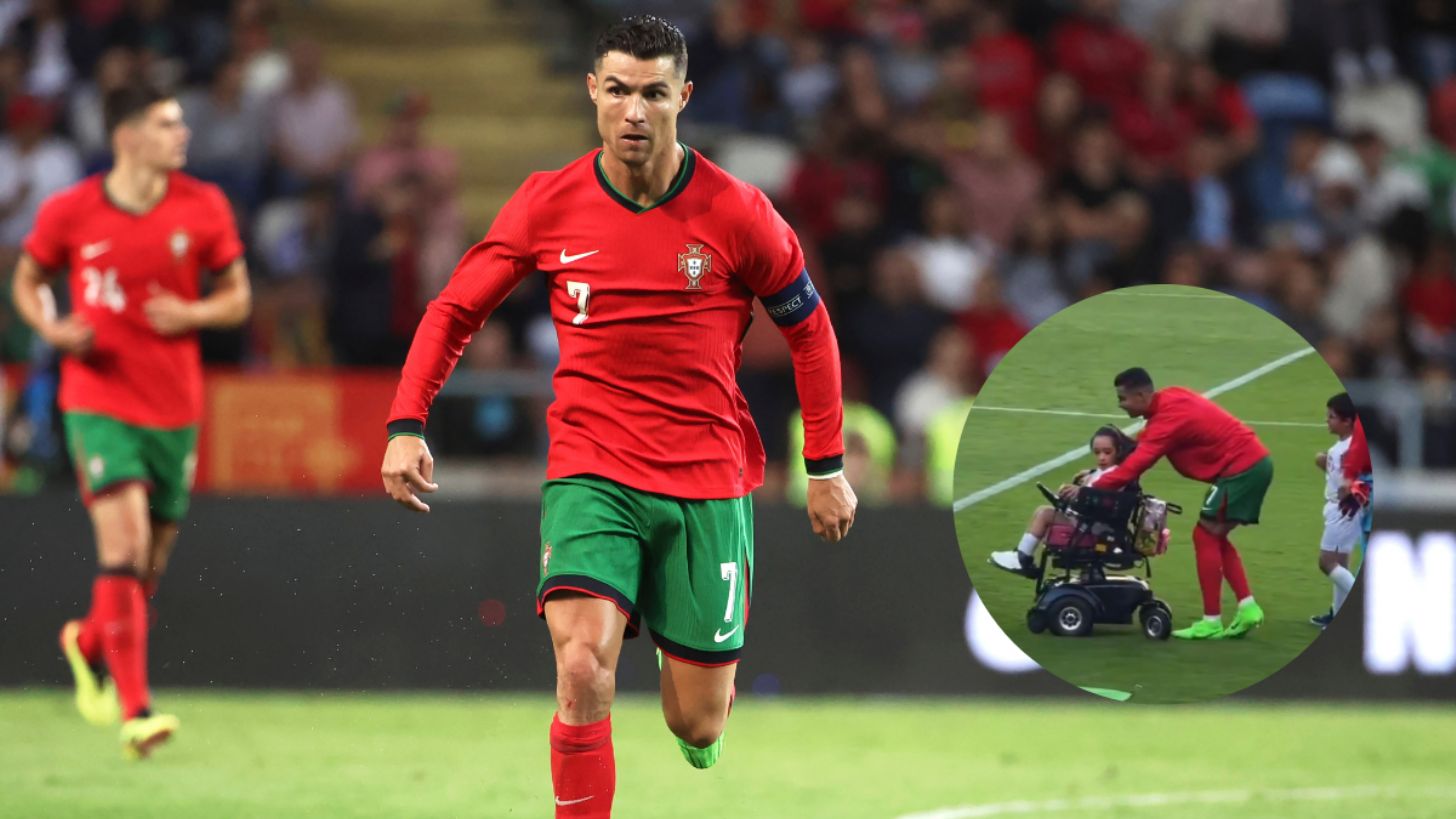 Y es que cuando salieron juntos al terreno de juego, el astro portugués se acercó a la pequeña en silla de ruedas para darle un abrazo durante el himno, pero eso no fue todo, ya que después le tomó la mano y provocó una tierna sonrisa y felicidad a la niña.