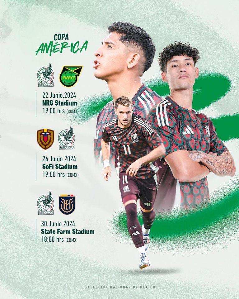 México debutará en la Copa América 2024 este próximo sábado 22 de junio en el NRG Stadium ante Jamaica, para después enfrentar a Venezuela en Los Ángeles y a Ecuador en Phoenix. Si avanza a cuartos de final se cruzará ante uno de los dos clasificados del Grupo A, integrado por Argentina, Canadá, Perú y Chile.