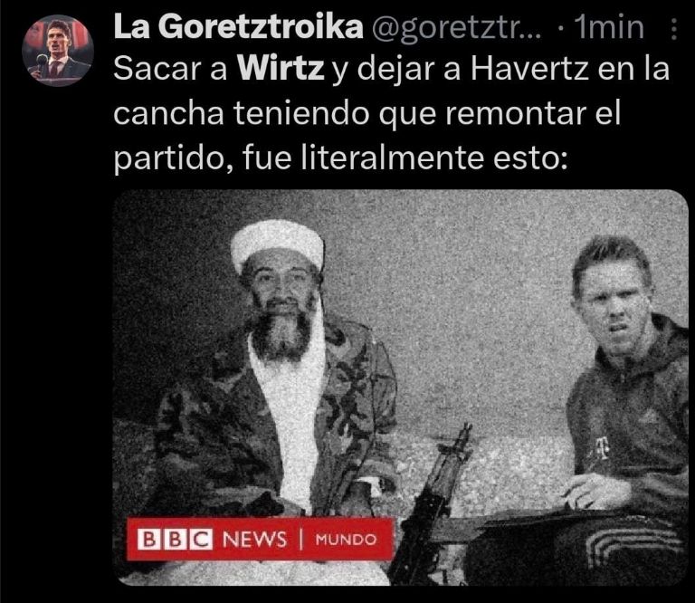 Alemania parecía encaminarse a un cómodo pase a octavos de final como líder de grupo cuando Robert Andrich anotó con un disparo de fuera del área, sin embargo, el VAR encontró una falta de Jamal Musiala que anuló el tanto. Lejos de intimidarse por el escenario hostil, Suiza trató de buscar los 3 puntos, silenció Frankfurt cuando Dan Ndoye abrió el marcador tras una jugada al límite del fuera de lugar. Clasificar como segundo no era el escenario imaginado para los teutones y llovieron los memes en redes sociales.