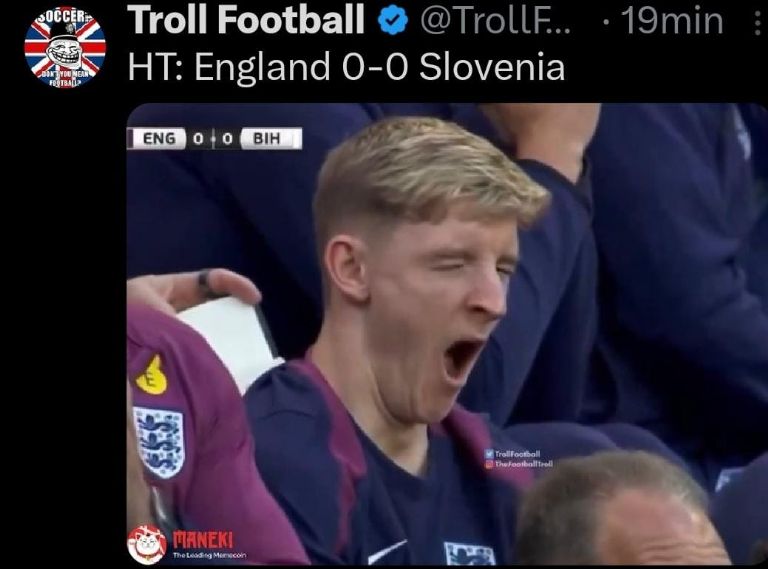 Inglaterra cumplió la tarea de avanzar a octavos de final en la Eurocopa 2024 como líder del Grupo C, pero volvió a decepcionar tras empatar sin goles contra Eslovenia. El conjunto de los tres leones una vez más fue incapaz de lucir en el torneo pese a tener un poderoso ataque y los memes lo destrozaron. Si bien no fue un partido espectacular, lograron el objetivo de pasar de ronda, jugarán el próximo 30 de junio contra un rival por definir.