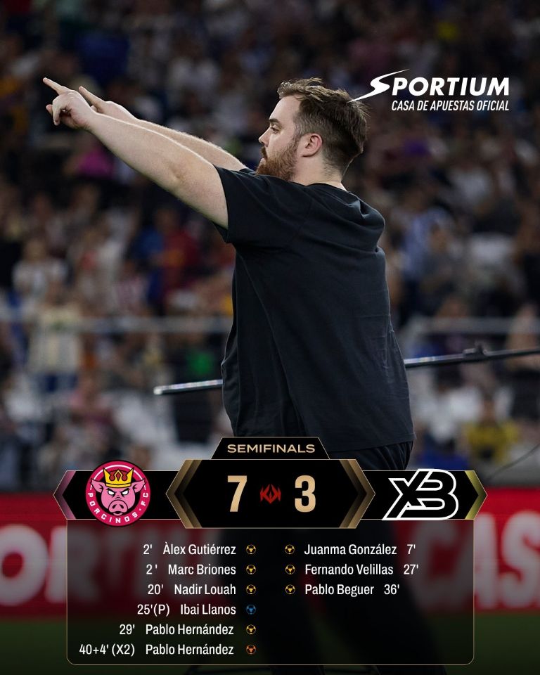 Tras haber caído derrotado frente a los macarras en la Final Four del Civitas Metropolitano, Porcinos consumó al fin su venganza al vencer 7-3 al xBuyer en la semifinal del Mundial de la Kings League y amarrando su pase a la final contra G3X, luego de que Raúl Guti (penal) y Marc Briones le dieran la ventaja 2-0 en los primeros minutos, aunque Juanma González redujo distancias con un disparo seco y raso.