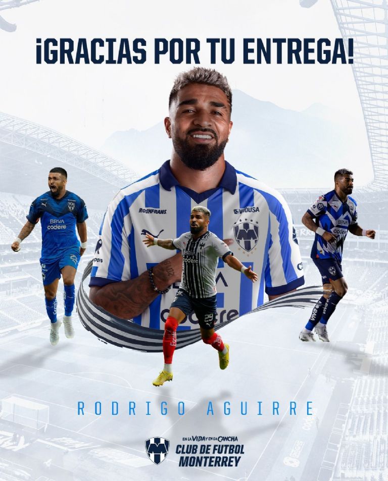 En un comunicado, Rayados de Monterrey hizo oficial no solo la baja de Rodrigo Aguirre para este Apertura 2024, sino también su llegada a las Águilas del América como transferencia definitiva para lo que resta del Apertura 2024: “El delantero uruguayo defendió la camiseta del Monterrey en 63 partidos: 58 de Liga MX, 1 de Leagues Cup y 4 de la Copa de Campeones de la Concacaf. En su paso por Rayados, el futbolista disputó partidos de Fases Finales en las tres competencias”.