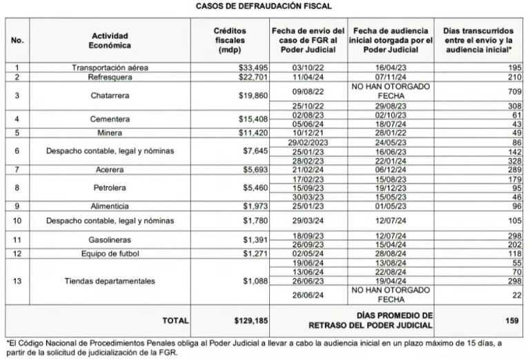 En su conferencia mañanera, AMLO refirió que el Poder Judicial de la Federación (PJF) está beneficiando y apoyando actos impropios de “delincuentes de cuello blanco”, pues “los jueces no les dan fechas de audiencia. Miren, son 13 empresas. ¿Ustedes creen que sea así por casualidad? ¿Cómo va a estar bien el Poder Judicial? ¿Para quién trabajan?”, indicó al momento de exhibir su lista con las empresas deudoras al SAT, entre las que destacó a un equipo grande de la Femexfut que debe más de mil millones