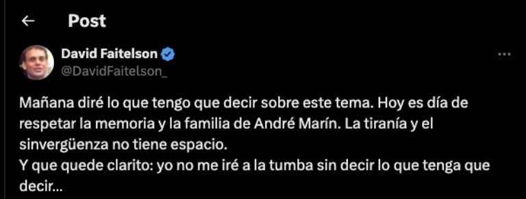 Al parecer, los problemas entre André Marín y José Ramón Fernández no han terminado del todo, y es que ahora David Faitelson amenazó a quien fuera su mentor, maestro y casi un padre en TV Azteca tras la muerte del periodista de TUDN. La noticia llegó cuando el hoy también trabajado de Televisa soltó una publicación en su cuenta oficial de X, donde aseguró que, el día miércoles 18 de septiembre dirá lo que tenga que decir sobre el tema, puesto que hoy martes 17 del mes patrio, se debe respetar la memoria y a la familia de su casi hermano, quien murió hace poco más de 24 horas.