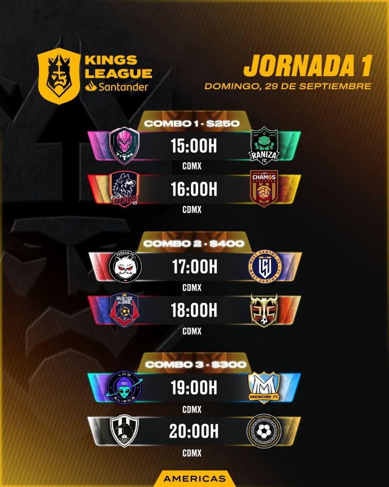 ¡Se acabó el ayuno! Luego de los tryouts internacionales en Colombia y el Draft celebrado en la Ciudad de México, la Kings League Américas vuelve recargada a partir de este próximo domingo 29 de septiembre para su Split 2, con nuevos futbolistas en cada club y la reedición de la final de la temporada pasada entre La Raniza vs Real Titán, encargada de abrir el telón de la Jornada 1 junto con estos partidos, de los que te traemos sus horarios.