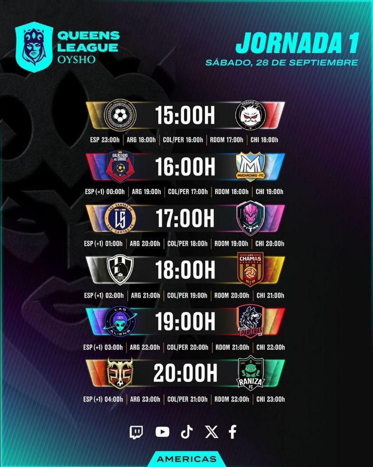 Ah, pero eso no es todo, pues además de decirte los horarios y partidos de la Jornada 1 del Split 2 de la Kings League Américas, también hará su debut la Queens League Américas el próximo sábado 28 de septiembre con duelos atractivos para conocer qué equipos tomarán protagonismo en busca del título.