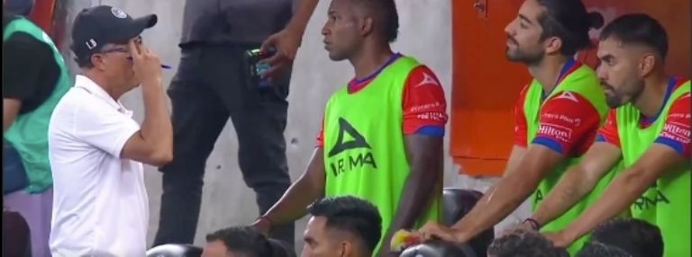 Corría el minuto 62 cuando el mexicano estaba hablando con el auxiliar de Vucetich, Carlos Barra, y aunque no se escucha lo que hablan, la cara del nuevo futbolista de los Cañoneros muestra señales de enojo y de desconcierto, ya que al final no terminaría viendo minutos ante uno de sus exequipos en la Liga MX.
