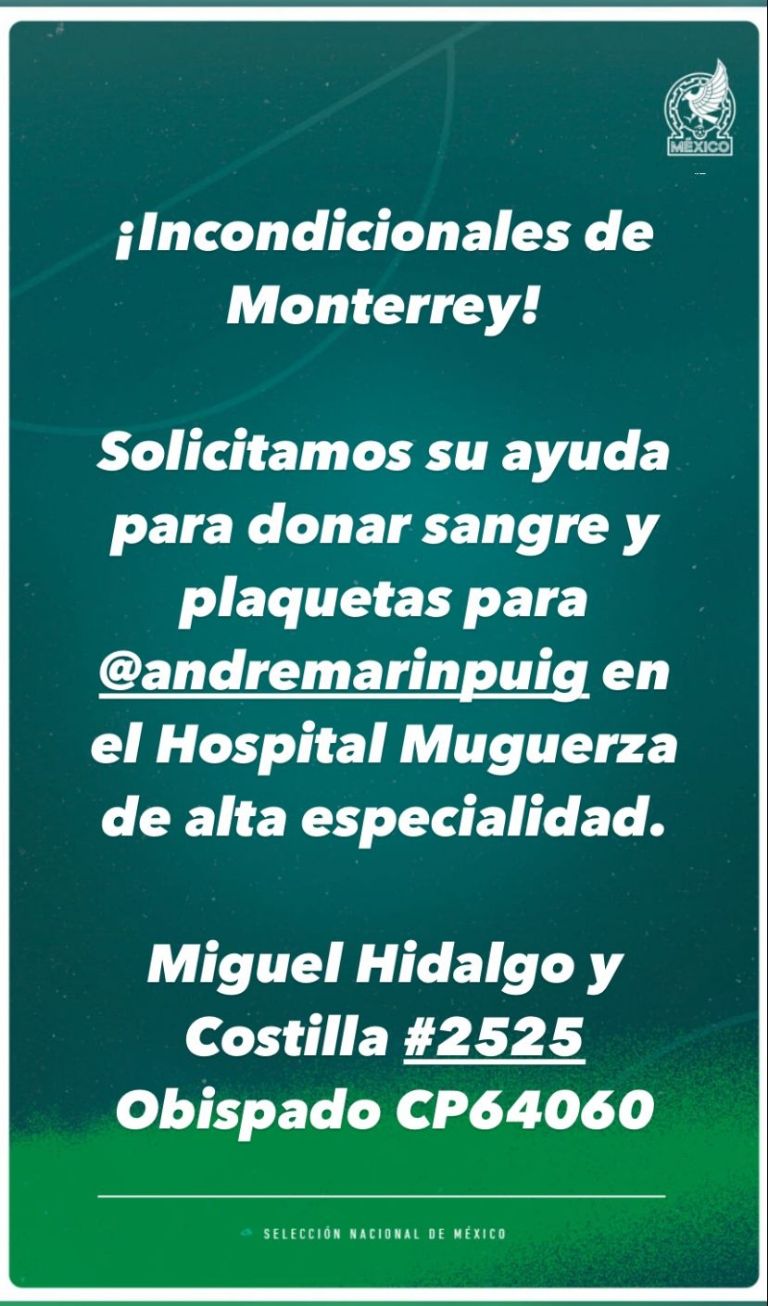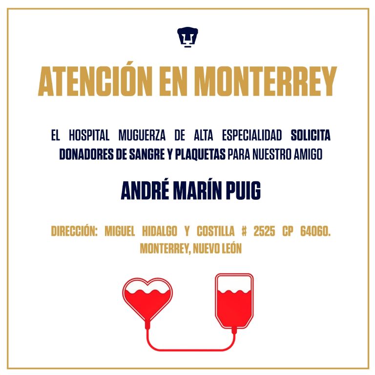 Ante el llamado de alerta lanzado en redes sociales por David Faitelson y ante la gravedad de la salud de André Marín, no solo la Liga MX ni la Selección Mexicana se han solidarizado en llamamientos a donar sangre y plaquetas para el comentarista deportivo, sino también varios equipos como Pumas, Tigres, América, Monterrey, Pachuca y León han llamado a sus aficionados a sumarse a la causa de apoyo para el comentarista.