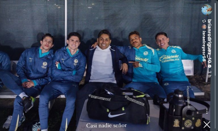 El jugador que subió una foto a lado del narrador de TV Azteca fue Brian Rodríguez, quien a lado de Jonathan Dos Santos, Israel Reyes y otro jugador; pudo subir una foto con Jorge Campos, con una leyenda que decía: “Con casi nadie señor”; recordemos que el Brody es amigo de todos, y de hecho siempre tiene buena relación con la mayoría de los cracks internacionales y nacionales.