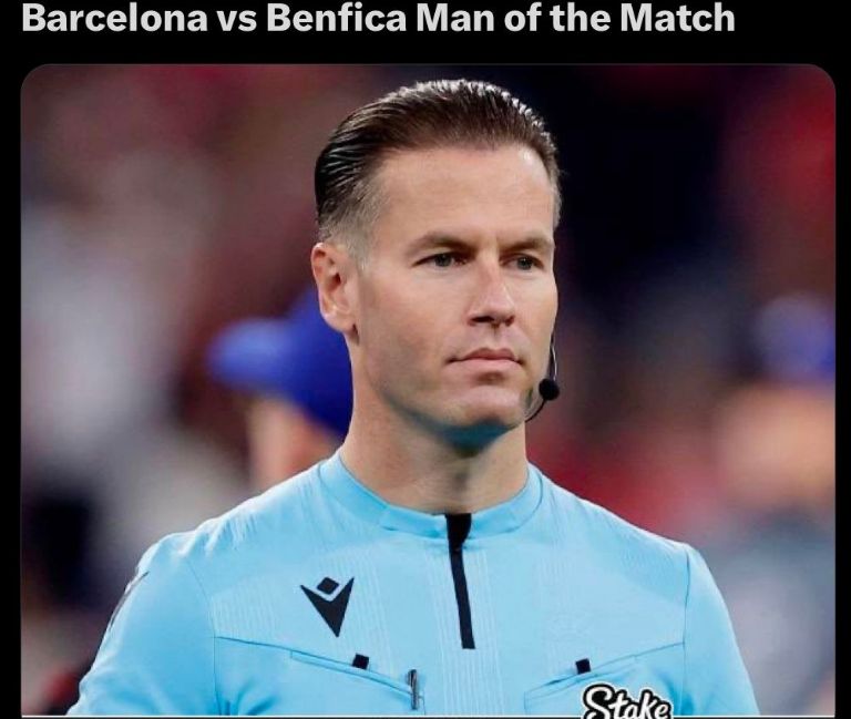 La polémica actuación del árbitro central determinó la remontada que tuvo el Barcelona sobre el Benfica en la UEFA Champions League. Los goles a favor del cuadro de As Águilas fueron: Vangelis Pavlidis en el 2´, 22´y 30 desde los 11 pasos; así como un autogol de Ronald Araujo en el minuto 58; mientras que, en la plantilla culé, quienes anotaron fueron: Robert Lewandowski en el minuto 13 y 78, ambos desde el tiro penalti, le siguió Rapinha en el 64´ y en el 96, así como Eric García en el 86, este fue el tanto del empate.