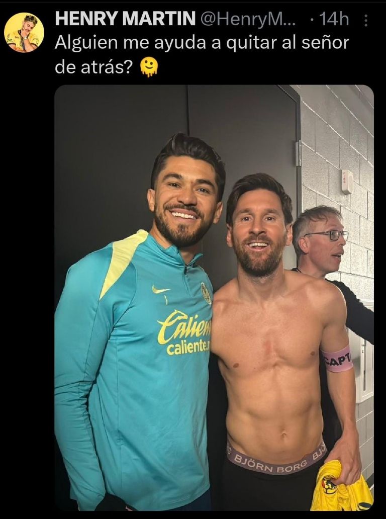 El delantero del América no se mostró tímido al presumir su foto con Lionel Messi en las redes sociales y de paso pidió ayuda para eliminar a la persona detrás: “¿Alguien me ayuda a quitar al señor de atrás”. La publicación generó en cuestión de horas 24 mil me gusta, casi 500 repost y más de 300 comentarios. Hubo fans que sí editaron la foto, pero en la publicación llovieron los memes, sobre todo de Cristiano Ronaldo. Al final esa imagen se quedará para siempre en el recuerdo del mexicano.