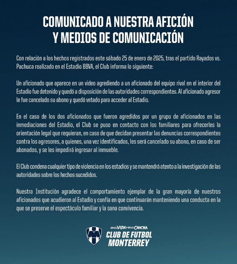 Rayados se pronunció ante la detención del aficionado que golpeó al fanático del Pachuca