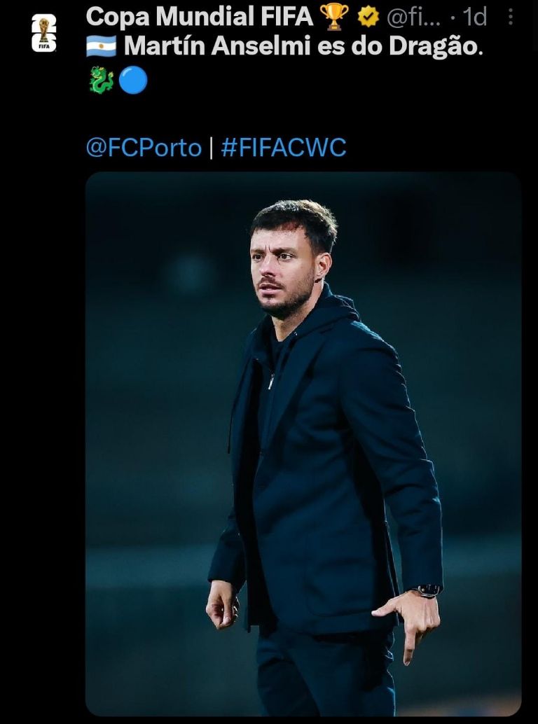 Fue a través de su cuenta de X donde la cuenta oficial de la Copa Mundial FIFA subió una foto de Martín Anselmi con el inesperado mensaje “Martín Anselmi es do Dragao (de los Dragones)”. Este posteo de inmediato desató las reacciones de los aficionados, en cuestión de horas sumó 4 mil 700 me gusta, 288 repost y casi 400 comentarios, la gran mayoría de reprobación ante la manera en la que salió el estratega de la Liga MX. Muchos preguntaron si Porto ya pagó la carta de salida.