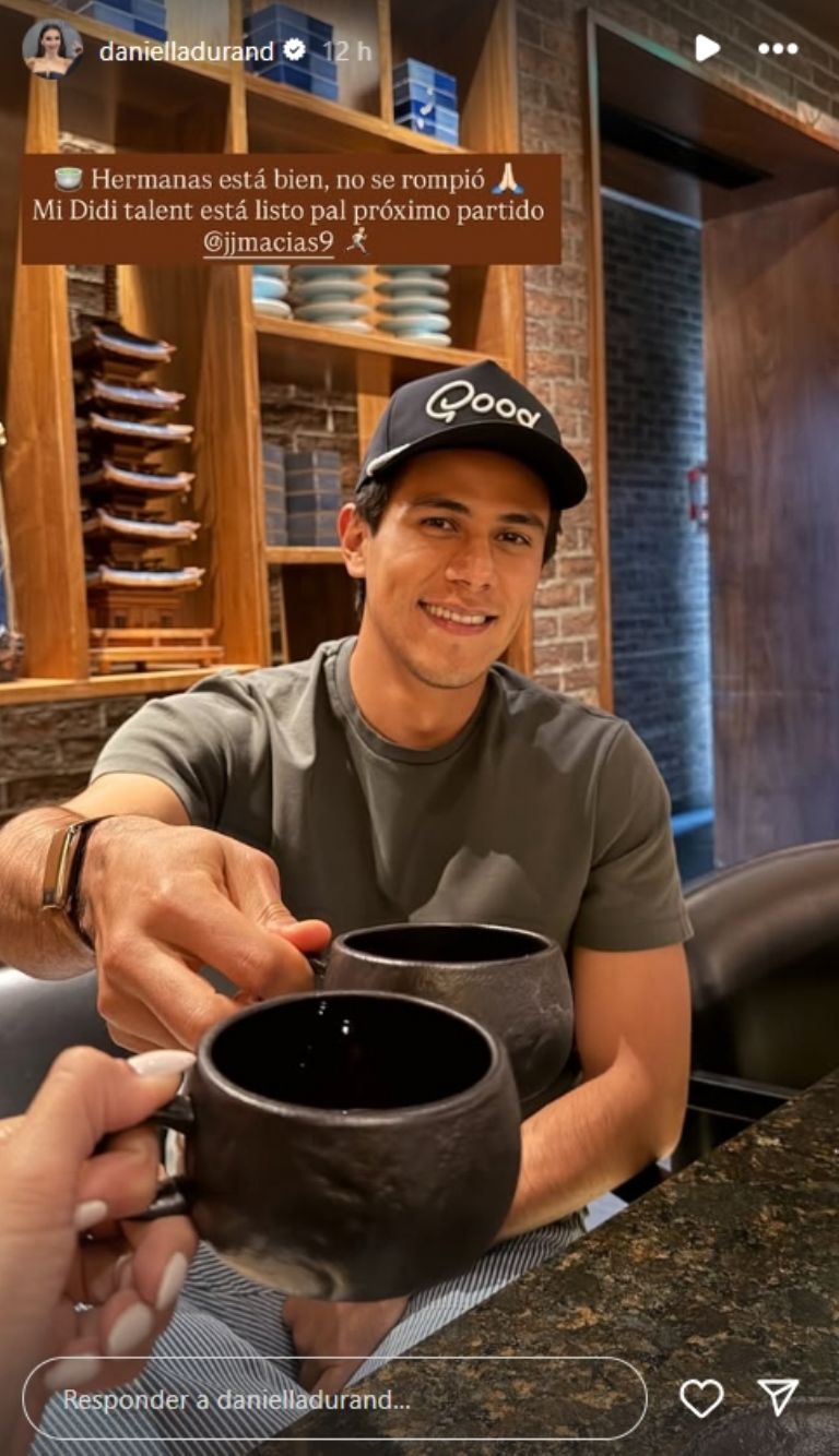La periodista Daniella Durand, cercana al futbolista, compartió una foto junto a Macías en la que se lo ve sonriendo, acompañada del mensaje: “Hermanas, está bien, no se rompió. Mi didi Talent está listo pal próximo partido”. La publicación disipó el temor entre los aficionados universitarios, que temían una recaída tras los antecedentes de lesiones musculares del atacante.