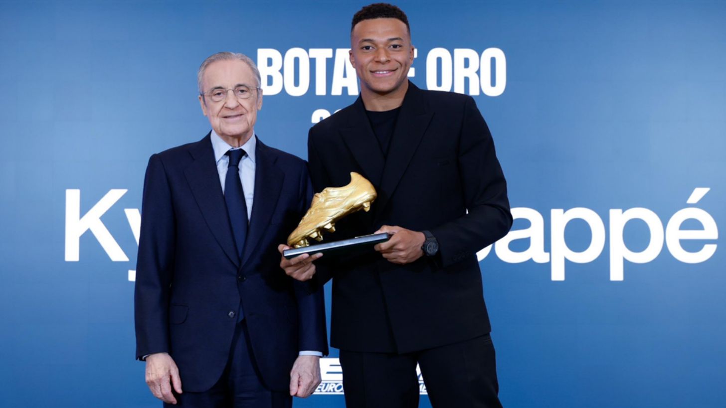El día de hoy, Kylian Mbappé fue homenajeado en un acto celebrado en el Santiago Bernabéu, donde recibió la Bota de Oro, reconocimiento que lo acredita como el máximo goleador de la pasada temporada en Europa. La ceremonia reunió a directivos, aficionados y miembros del club para celebrar el logro del delantero francés.