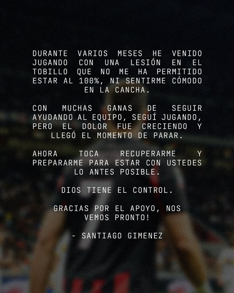 Así, Milan enfrenta un escenario delicado: definir si opera a Santiago para garantizar su recuperación total y, en paralelo, cerrar la llegada de un delantero que cubra su lugar mientras el mexicano intenta volver a ser protagonista con la camiseta rossonera.