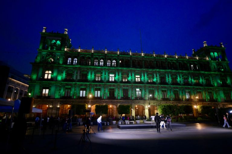 Más de 40 inmuebles representativos de la Ciudad de México se iluminaron de luz verde para celebrar que solo falta un año para que la Copa del Mundo de la FIFA se juegue en Norteamérica.