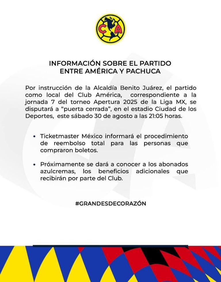 La polémica se desató el pasado sábado 30 de agosto, cuando el partido entre el América y el Pachuca que se iba disputar en el Estadio Ciudad de los Deportes se vio forzado a jugarse a puertas cerradas por órdenes del alcalde de la Benito Juárez en la Ciudad de México, Luis Mendoza. El argumento, según un comunicado de la alcaldía, fue por un supuesto cierre de calles por parte de personal del América, cuestión que va más allá de sus facultades.