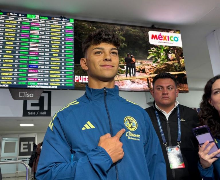 El jugador de 21 años aterrizó en el Aeropuerto de la Ciudad de México aproximadamente a las 18:00 horas y de inmediato se dirigió al Estadio Ciudad de los Deportes para presenciar el encuentro entre las Águilas y el Olimpia de la Concachampions 2026.
