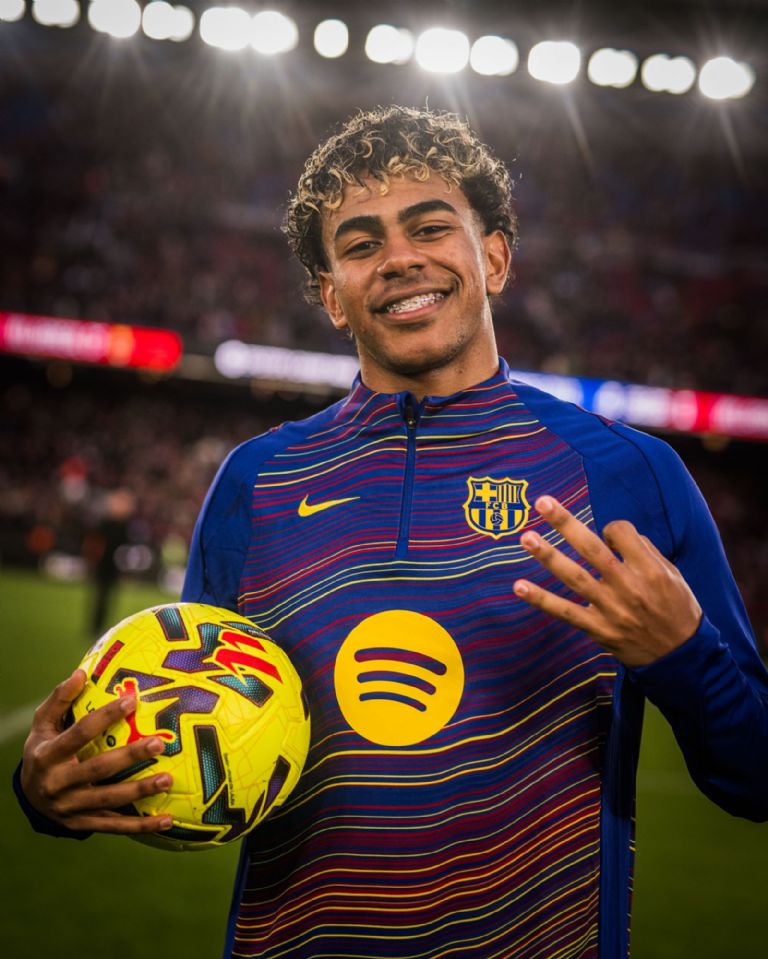 Su triplete lo festejó en el segundo tiempo, a los 69 minutos, tras recibir un pase de Pedri y enviar la pelota al fondo de la red. De esta forma, superó a Lionel Messi en conseguir su primer hat-trick como blaugrana, ya que "La Pulga" lo logró con 19 años y 259 días, mientras que Yamal lo consiguió con 18 años y 230 días.