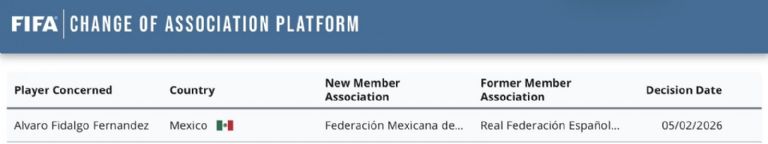 Álvaro Fidalgo podrá pelear por un lugar en el Mundial 2026 con la Selección Mexicana, pues se confirmó que su cambió de Federación su positiva por parte de la FIFA, tras presentar los documentos necesarios.