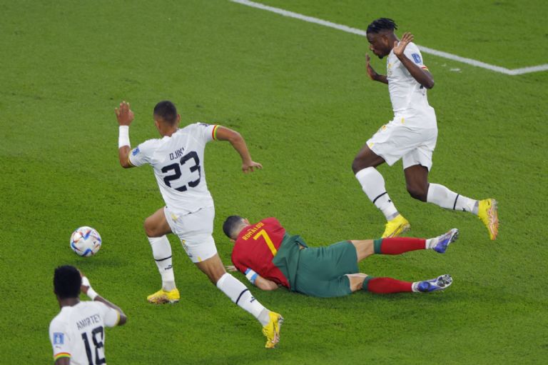 Corría el minuto 65 del encuentro cuando el juez central pitó una polémica falta dentro del área africana precisamente al astro portugués, quien tras sentir un pequeño roce en la espalda se fue al piso. Y pese a los reclamos de la defensa rival, el árbitro mantuvo la decisión en beneplácito de los aficionados que se presentaron en el campo.