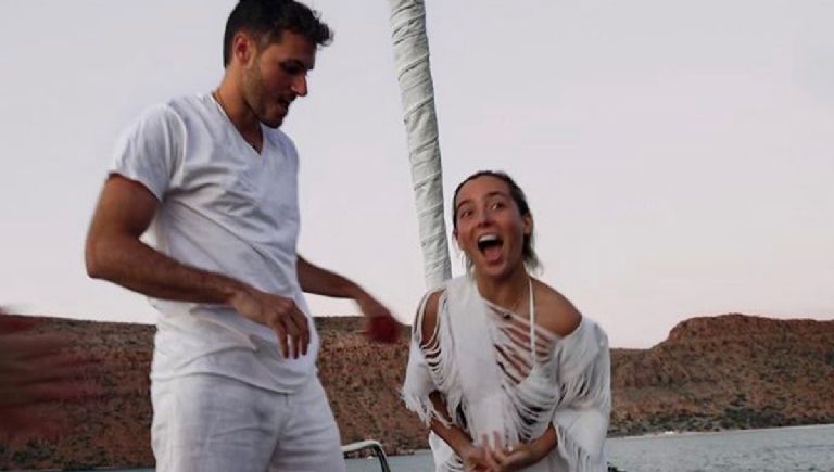 A través de las redes sociales de ambos, tanto de Fer como de Santi, pudieron revelar la pedida de mano en un tipo de playa arriba de un barco, en dichas imágenes se puede observar como el Bebote está de rodillas para pedirle que sea su esposa.