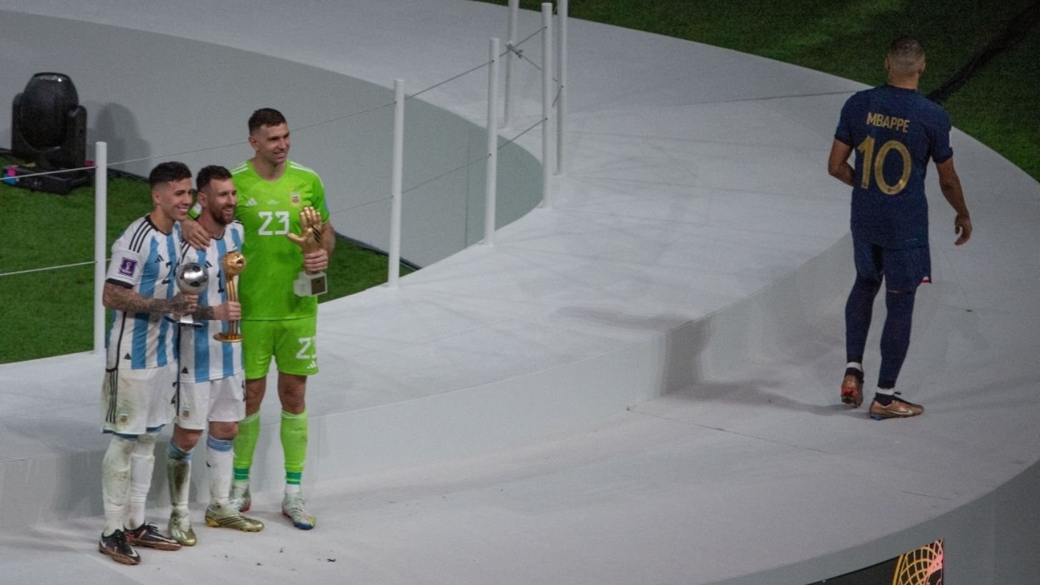 Además de a Messi, la FIFA distinguió también con el Guante de Oro al arquero argentino Dibu Martínez por sus maravillosas actuaciones que llevaron a Argentina a la final y con el Botín de Plata a Enzo Fernández, sin duda el mejor jugador joven de la Copa del Mundo junto con Lautaro Martínez que auguran un glorioso futuro para la selección albiceleste. Mbappé, triste y compungido, recogió la Bota de Oro como el máximo goleador de este Mundial con ocho tantos.
