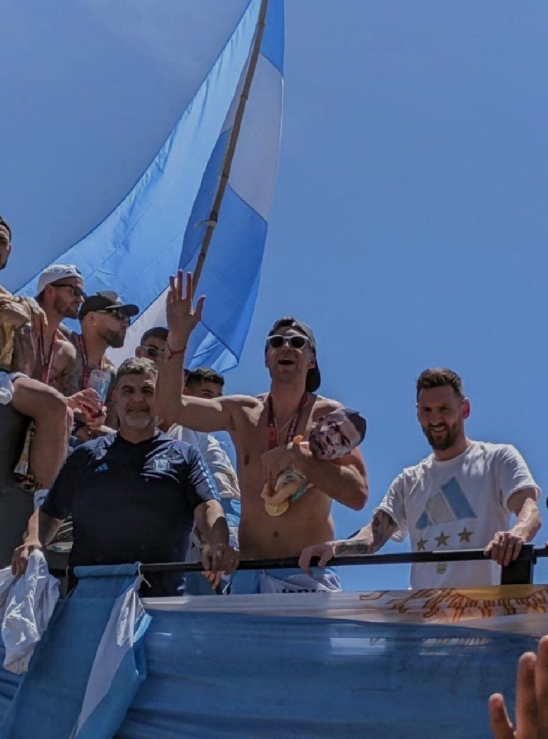 El último acto le resta valor al portero argentino se dio este martes, cuando todo el equipo aterrizó directamente desde Qatar en el aeropuerto de Argentina. De ahí partieron en los famosos camiones con el techo descubierto para que todos los aficionados pudieran celebrar con los héroes.